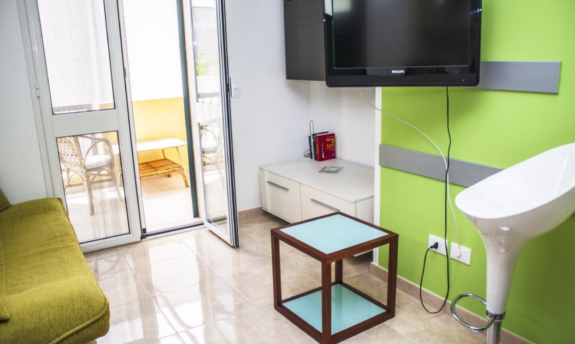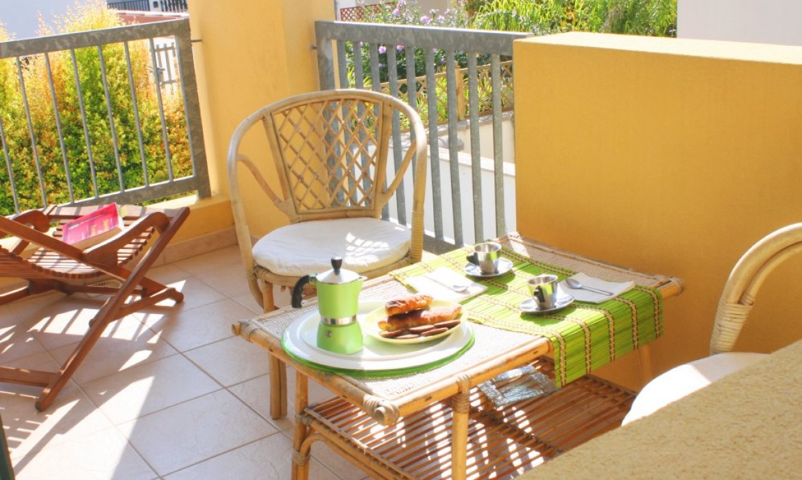 La struttura proposta in locazione è di tipologia trilocale, dotata di tv color, climatizzatore, bagno completo, due camere da letto matrimoniali, ingresso/soggiorno/cucina con divano e tavolo con sedie completa di angolo cottura, due balconcini e una veranda attrezzata con tavolo e sedie da esterno per mangiare all'aperto.