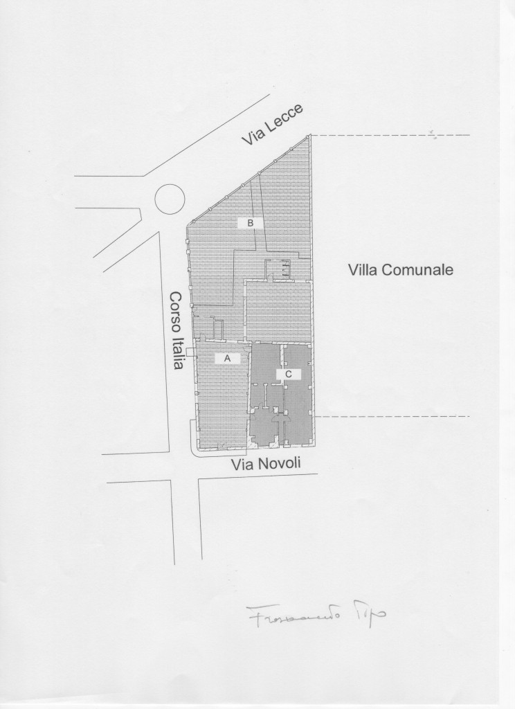 Locale ex Opificio con Giardino in centro a Campi Salentina, libero da 3 lati con entrambi tutti prospicienti strade urbane ed extraurbane. Aree solare libere ed edificabili per l'intera superficie del piano terra. Giardino retrostante di mq 400 circa. Il locale all'interno è cosi composto: locale stoccaggio di mq circa 260 priva di pilastri centrali ma con solai tutti su travi orizzontali e incatenate con travi rovesce e non; area essiccazione di circa mq 10; bagno di circa mq. 6; parte storica completamente volte a stella per circa mq 280; locale retrostante di circa mq 190 mq priva di pilastri centrali ma con solai tutti su travi orizzontali e incatenate con travi rovesce e non; area bagno con spogliatoio per circa mq 10. Le altezze dei locali misurano circa m 8, mentre le altezze della parte antica volte a stella la classica altezza di m 4.5. L'intera struttura gode di un affaccio su tre strade libere urbane ed extraurbane, e da un lato prospiciente la villa comunale. Sito in zona centrale e con fronte su Via che porta a Lecce. Possibilità di vendita frazionata.