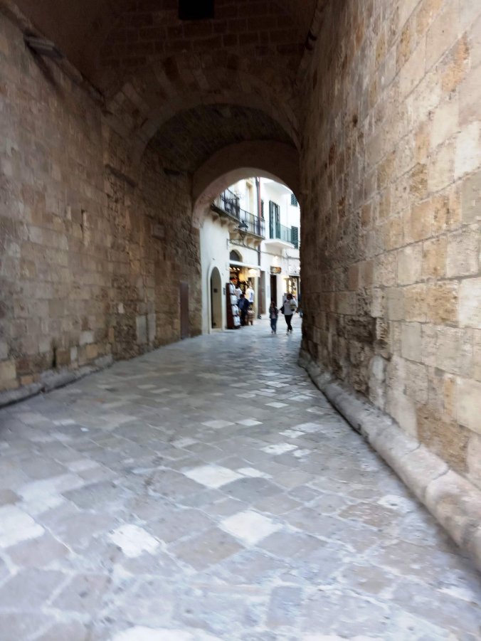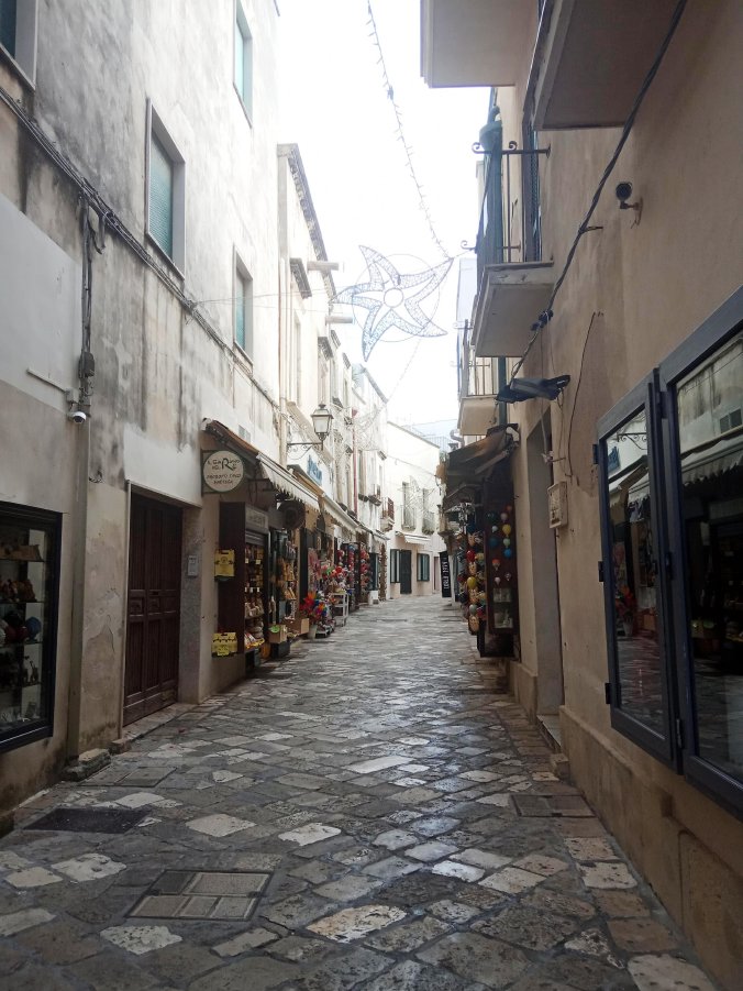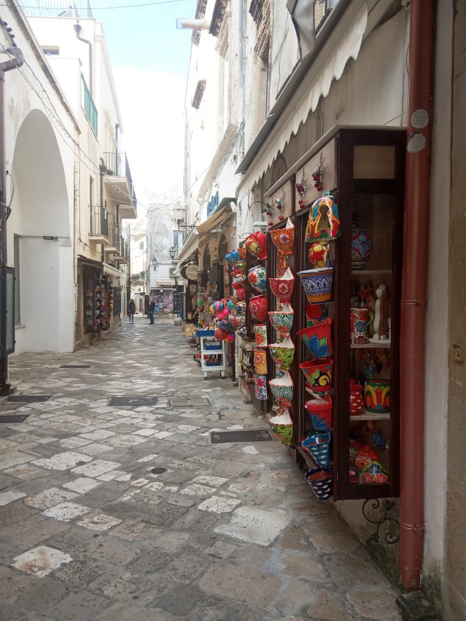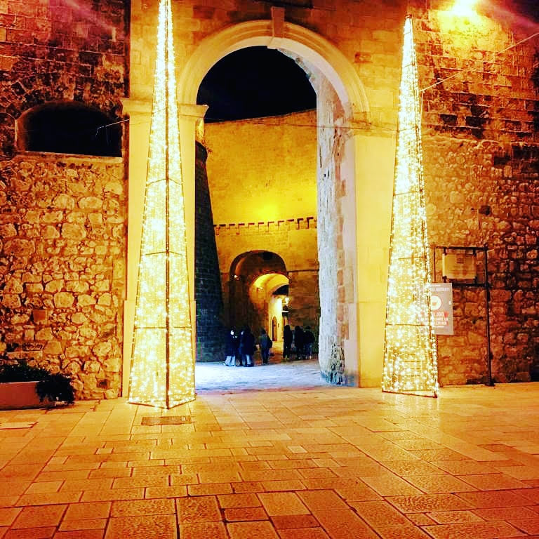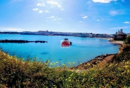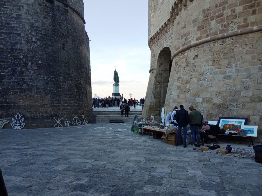 A pianta quadrata con croce greca inscritta presenta un cupolino cilindrico centrale sorretto da 4 colonne. Essa è famosa per la presenza di un interessante ciclo di affreschi di scuola bizantina, datati tra X e XVI secolo. A seguito dell’attacco turco tra il 1485 e il 1498 Alfonso d’Aragona Re di Spagna promosse la fortificazione della città e la riedificazione del castello. Il maniero severo nelle sue forme è a pianta pentagonale con tre torrioni cilindrici prospettati verso la città e un bastione a forma di lancia verso il lato mare.