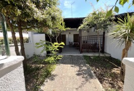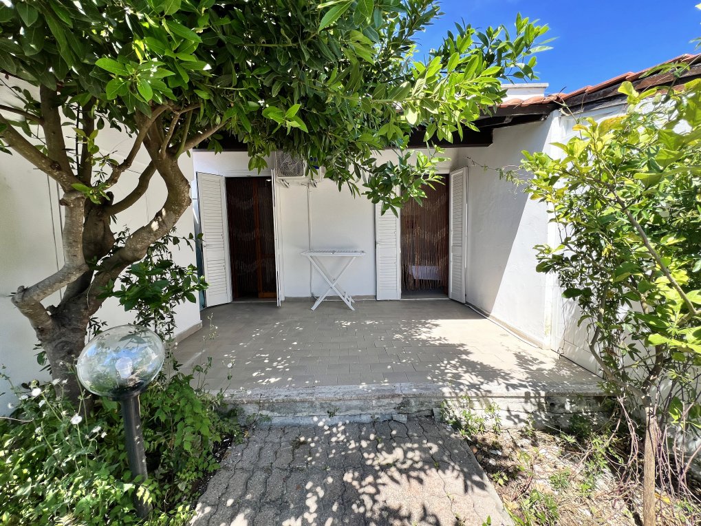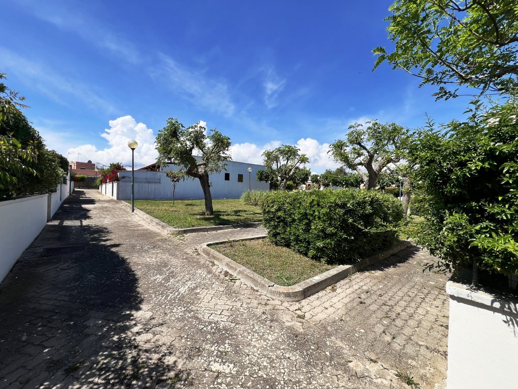 Villetta a Piano Terra a Torre dell'Orso in via Mosca in residence privato denominato Blu Area senza animazione. Villetta composta da due giardini, uno avanti e uno dietro, di cui solo quello sul d'avanti è attrezzato con divanetto e poltroncine da esterno in vimini, tavolo in legno con poltroncine in legno per pranzare e cenare all'aperto, veranda coperta con tegolato in legno, doppi servizi, tre camere da letto.