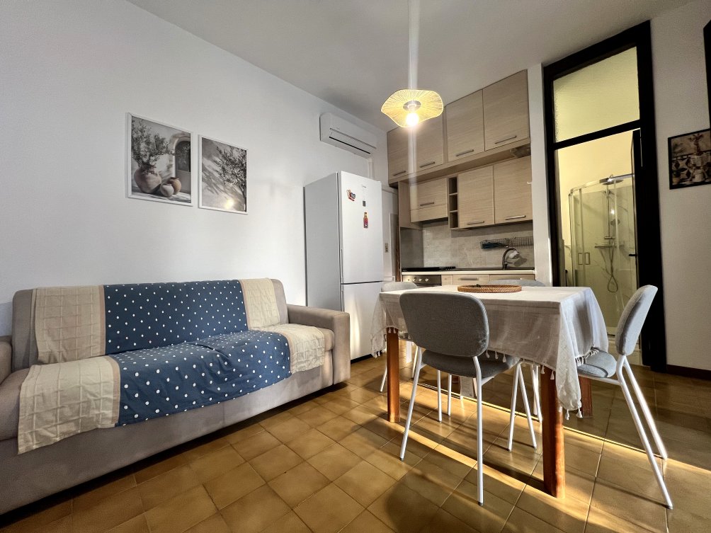 Ideale per soggiorni e vacanze tranquille, ubicata in posizione strategica, in prossimità dell’area divertimenti denominata “I GIARDINI DEL SOLE” (campi da tennis, minigolf, giochi di intrattenimento per bambini, ecc.). Nelle vicinanze: negozi di vario genere, ferramenta, Chiesa, pronto soccorso, farmacia, super mercato, ristoranti, pub, pizzerie, ecc., ma soprattutto a pochissimi minuti a piedi dal mare … Zanzariere NON presenti. Posto auto NON presente. Posti letto complessivi due nella camera da letto e due per bambini/ragazzi nel soggiorno su divano. CIN: IT075043C200119819