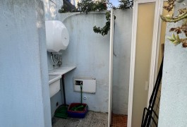 1 stanza da letto matrimoniale; 1 bagno con doccia ma senza bidet; 1 sala da pranzo / soggiorno con cucina attrezzata e divano letto piazza mezza; 1 veranda esterna privata con spazio antistante pavimentato e tenda per il sole, con gazebo e mobilia da esterno, tavolo con sedie per pranzare e cenare all’aperto. Inoltre: 1 climatizzatore fisso (12000 BTU) nel soggiorno, tv color, lavatrice, pilozza esterna, doccia esterna.