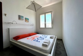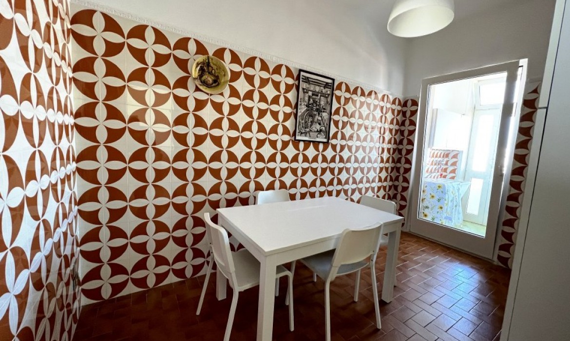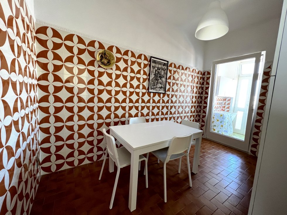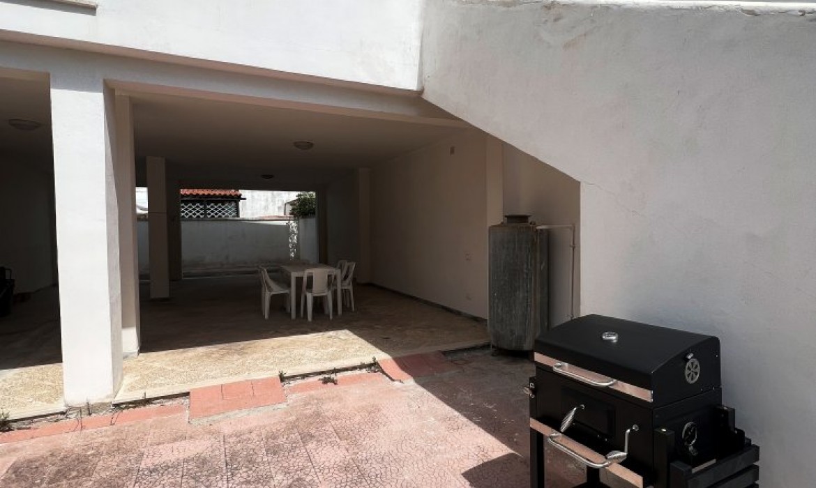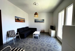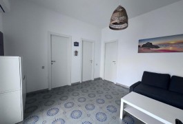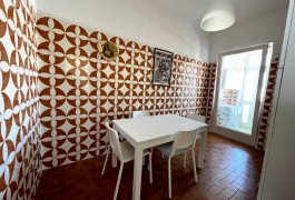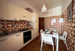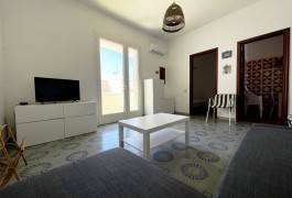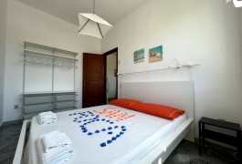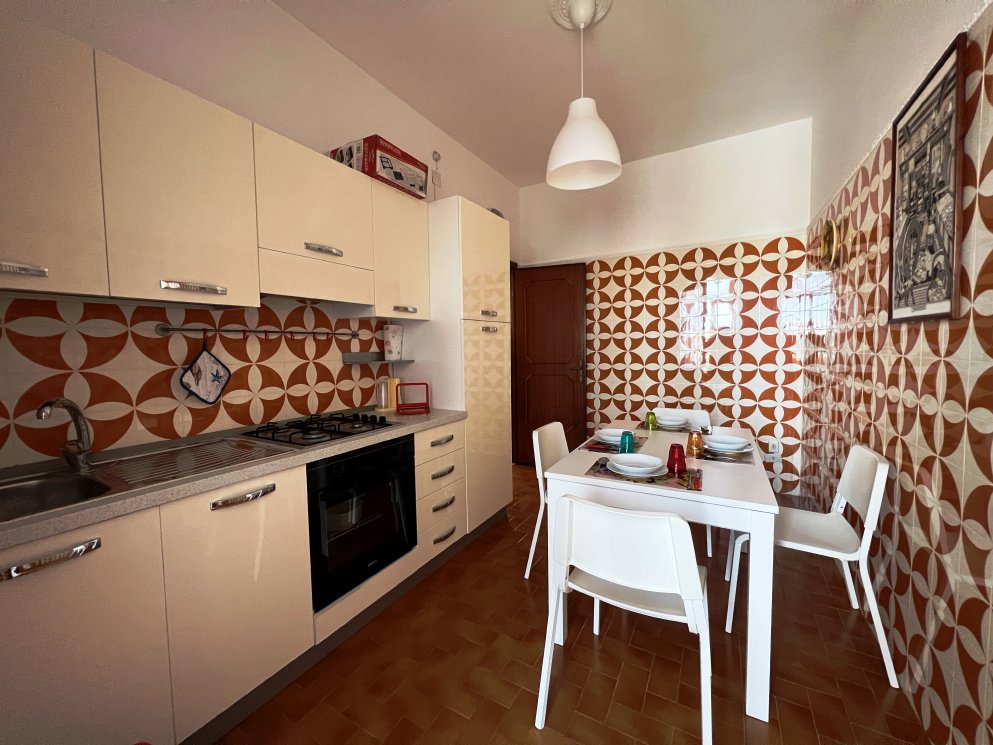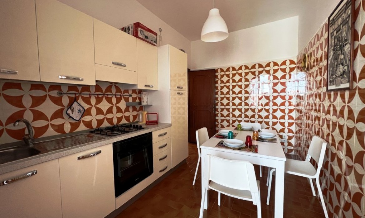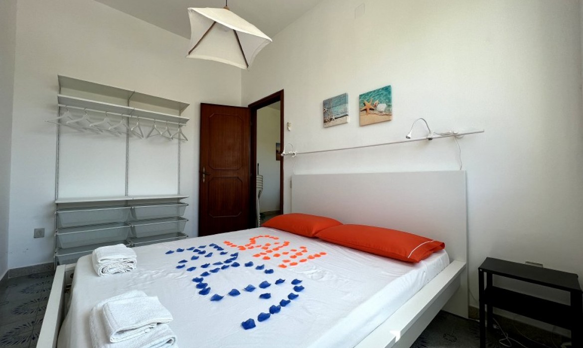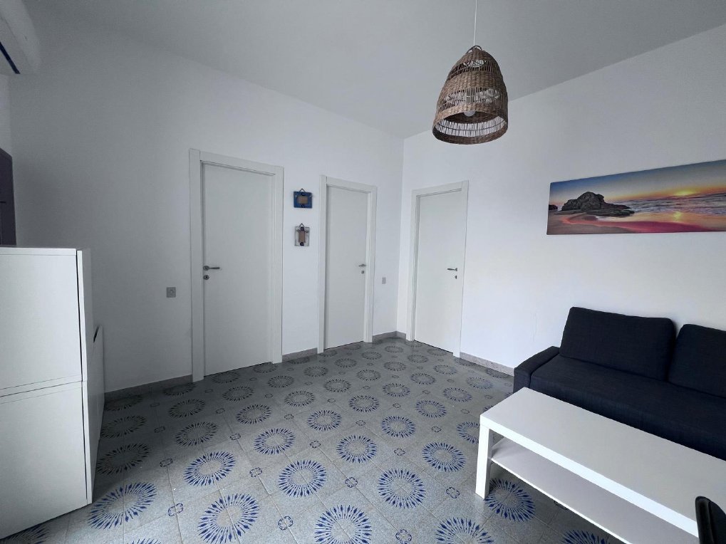 Appartamento nella Marina di San Foca a Primo Piano ed ultimo con balconcino avanti e veranda grande a piano terra attrezzata con tavolo sedie e barbecue, posto auto interno. Dista dalla spiaggia di sabbia appena 270 m. La soluzione vacanza proposta in locazione, si compone da: Piano terra con ingresso posto auto, veranda coperta e scoperta grande attrezzata con tavolo e sedie in plastica e barbecue  per pranzare e cenare all'aperto, doccia esterna solo acqua fredda, scale per l'accesso al piano primo; al Piano Primo troviamo un balconcino con tavolino per le colazioni, ingresso-soggiorno open-space con divano letto matrimoniale e tavolino e tv color lcd 32 pollici, tinello-cucina completo di cucina componibile e tavolo con sedie, frigo con congelatore, lavanderia a parte con pilozza e lavatrice, disimpegno notte e giorno dove troviamo 2 camere da letto matrimoniali, entrambe complete di armadi e comodini, bagno completo con box doccia. Balcone anteriore per trascorrere piacevoli momenti in relax respirando la meravigliosa aria fresca di San Foca. Posti letto 4/5/6. Climatizzato nel soggiorno e in una sola camera da letto. Dista dalla spiaggia libera e o attrezzata appena 270 m. Accessori presenti: lavatrice, aria condizionata, ferro da stiro con asse, phon, frigo con congelatore, forno, autoclave con serbatoio, tv color lcd 32", barbecue, piastra elettrica per arrosti. Arredato Nuovo e con infissi a taglio termico. Stoviglie complete. Zanzariere presenti.  CIN:  IT075043C200059557