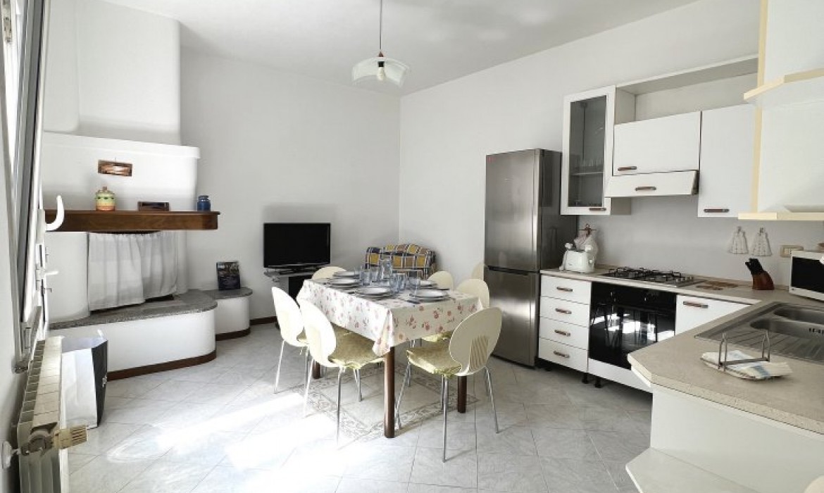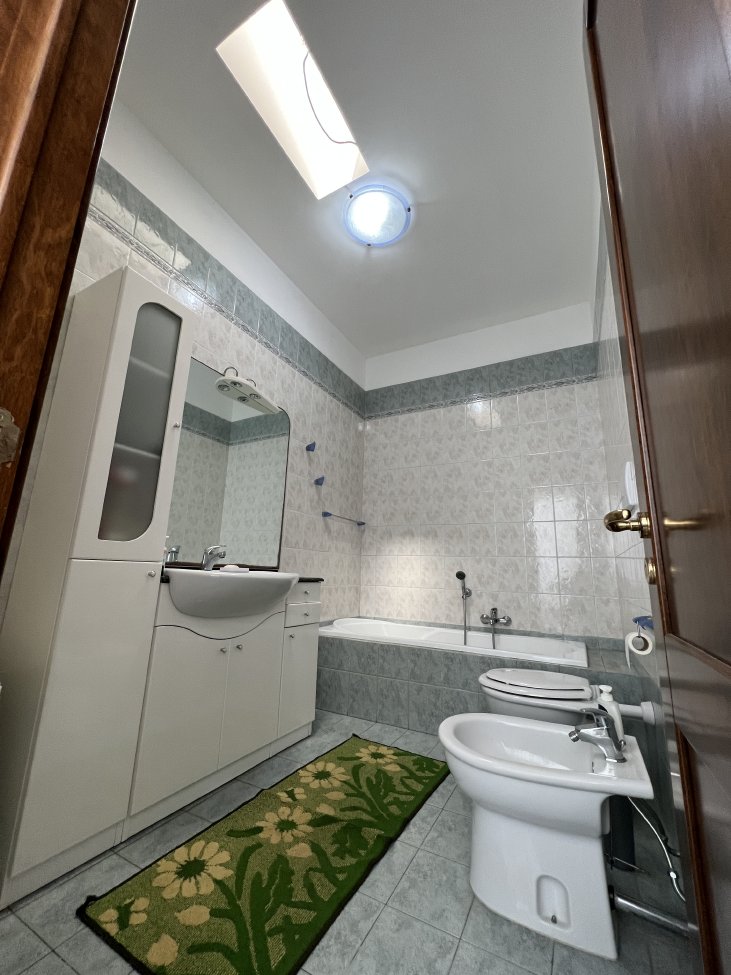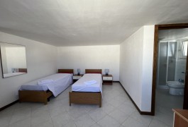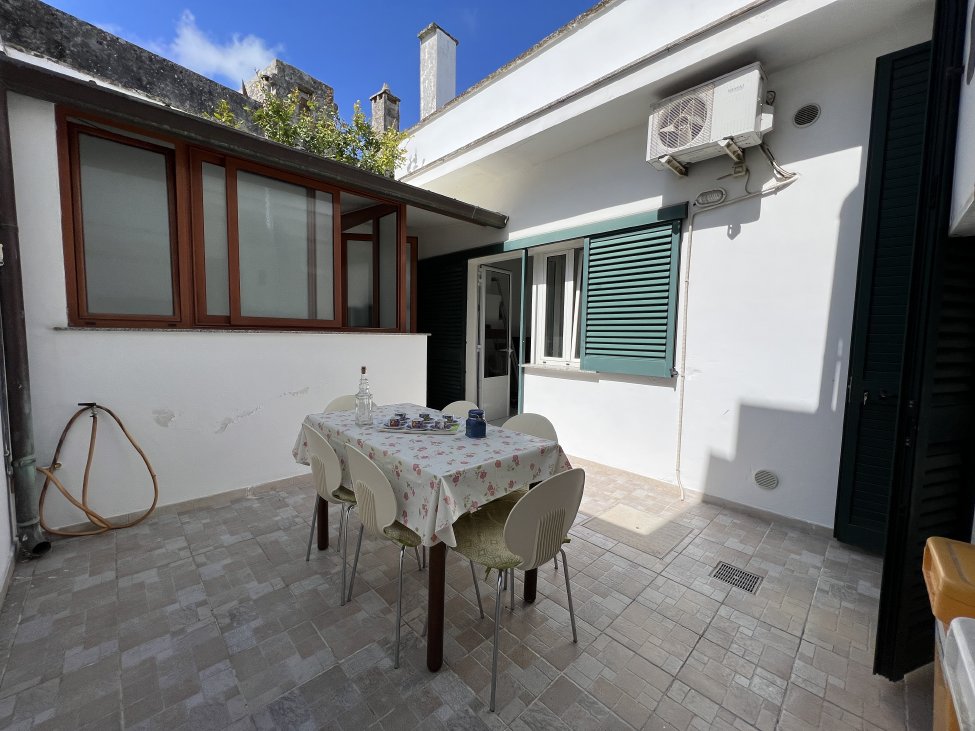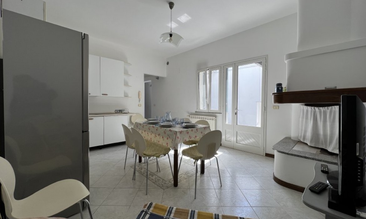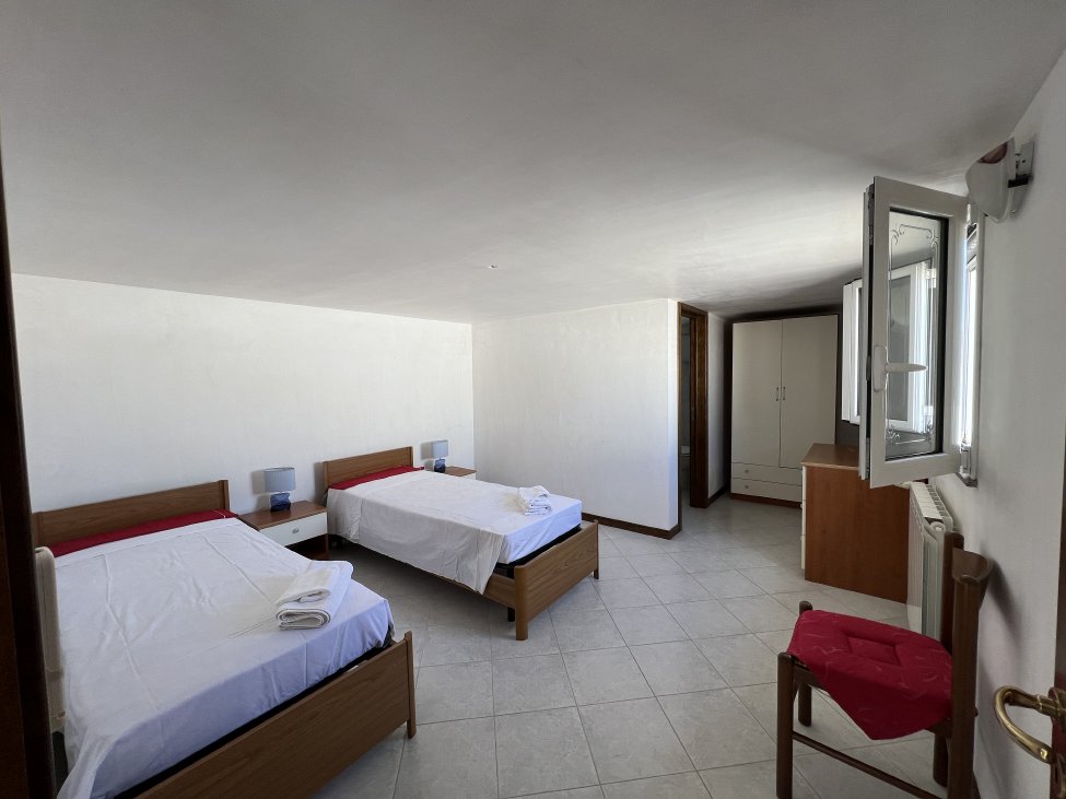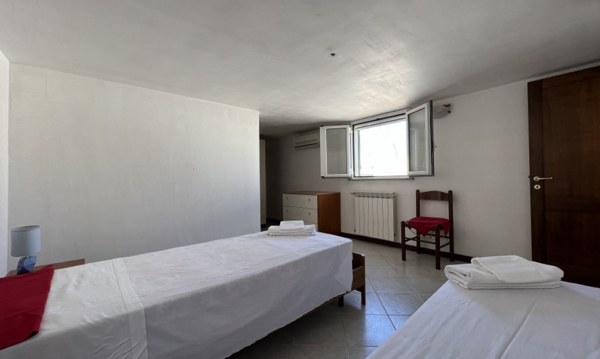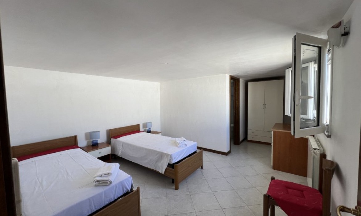 Entriamo ora nel dettaglio di Residenza Giulio: Indipendente, si compone da: ingresso con divano e tavolino e credenza, vano ripostiglio grande con accesso indipendente sia dalla strada e sia dall'interno della casa, con specchiera, scarpiera, asse da stiro con ferro, aspirapolvere, disimpegno centrale, soggiorno-cucina grande abitabile con tavolo e sedie e angolo cottura con elettrodomestici tipo forno, frigo con congelatore, microonde, tostapane, tv color lcd con decoder 32 pollici, ( dalle foto si intravede il camino che NON è in nessun modo utilizzabile in quanto privo di canna fumaria), 3 camere da letto grandi complessive, di cui una matrimoniale con finestra ad altezza uomo a piano terra, una con finestro alto motorizzato ma con aria condizionata a piano terra, una doppia con finestra al piano Mansarda, un bagno interno completo e con vasca anch'esso con finestro alto motorizzato, veranda posteriore pavimentata attrezzata con tavolo e sedie da esterno per mangiare e cenare all'aperto, ulteriore vano coperto con finestre e seconda cucina del tipo economica con pilozza e lavatrice; dal vano ripostiglio e mediante una scala in cemento piastrellata molto comoda, si accede al piano primo dove troviamo la Mansardina con disimpegno e porta che affaccia sulla terrazza di pertinenza esclusiva, una camera da letto completa con due letti singoli all'occorrenza accoppiabili e aria condizionata, ulteriore bagno completo con doccia e finestra altezza uomo; Altezza soffitto mansarda mt 2. Ospita un massimo di 6 persone. Zanzariere nella camera da letto con finestra, nella camera in mansarda, nel bagno in mansarda. Dista dalla spiaggia di sabbia di Torre dell'Orso, Torre Sant'Andrea, Laghi Alimini e Otranto, appena 10 km percorribili facilmente in auto in 10 minuti. Sito in centro a Serrano, piccolo paese con tutti i servizi indispensabili nelle vicinanze e raggiugibili a piedi. A 50 metri dalla casa, troviamo la Villa comunale curata, con panchine e spazi verdi per rilasssarsi nelle calde serate d'estate con bar annesso. La soluzione offerta in locazione, è un'ottima soluzione vicino al mare di sabbia e in un posto tranquillo, con prezzi vantaggiosi e accessibili a tutti, ma sopratutto per famiglie numerose o doppie famiglie. In questa residenza potrai godere di Vacanze sane e tranquille, dove rilassarsi e vivere momenti della giornata ormai persi della vita quotidiana. CIN: IT075015C200073871