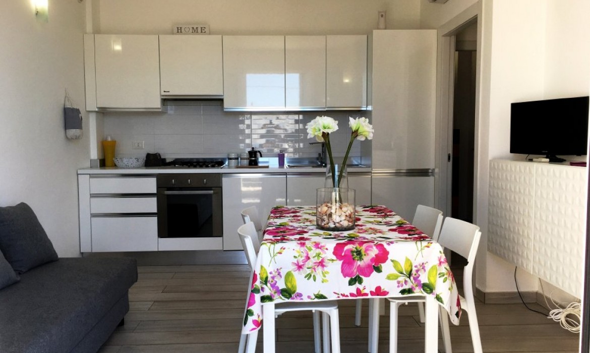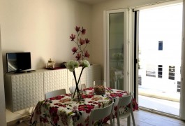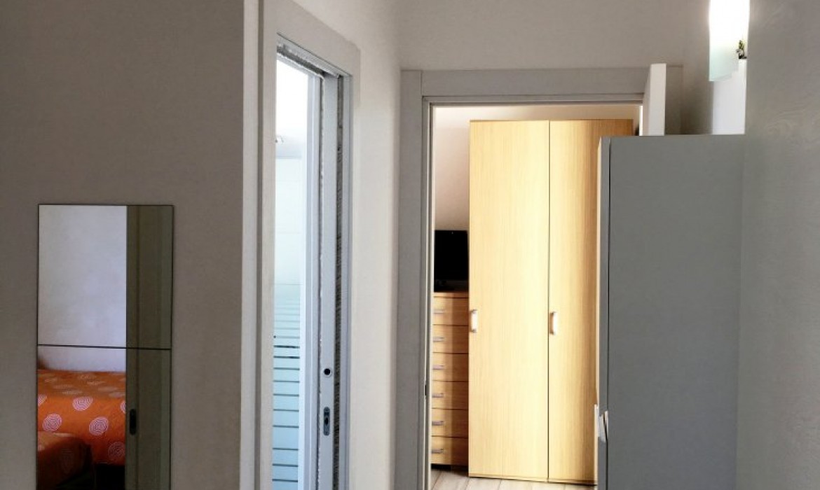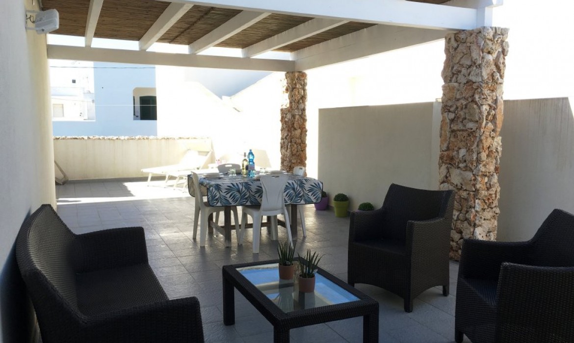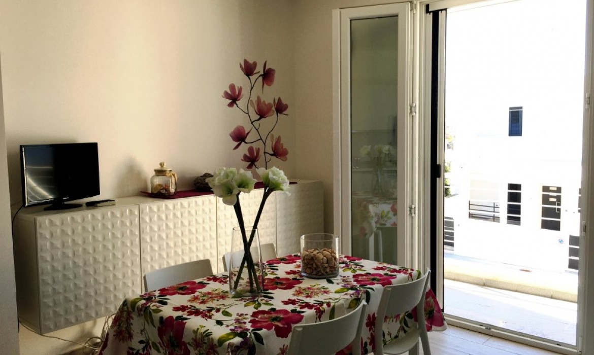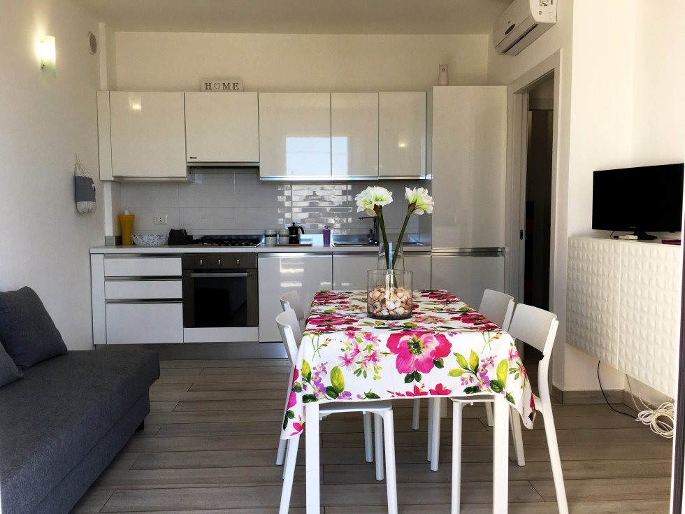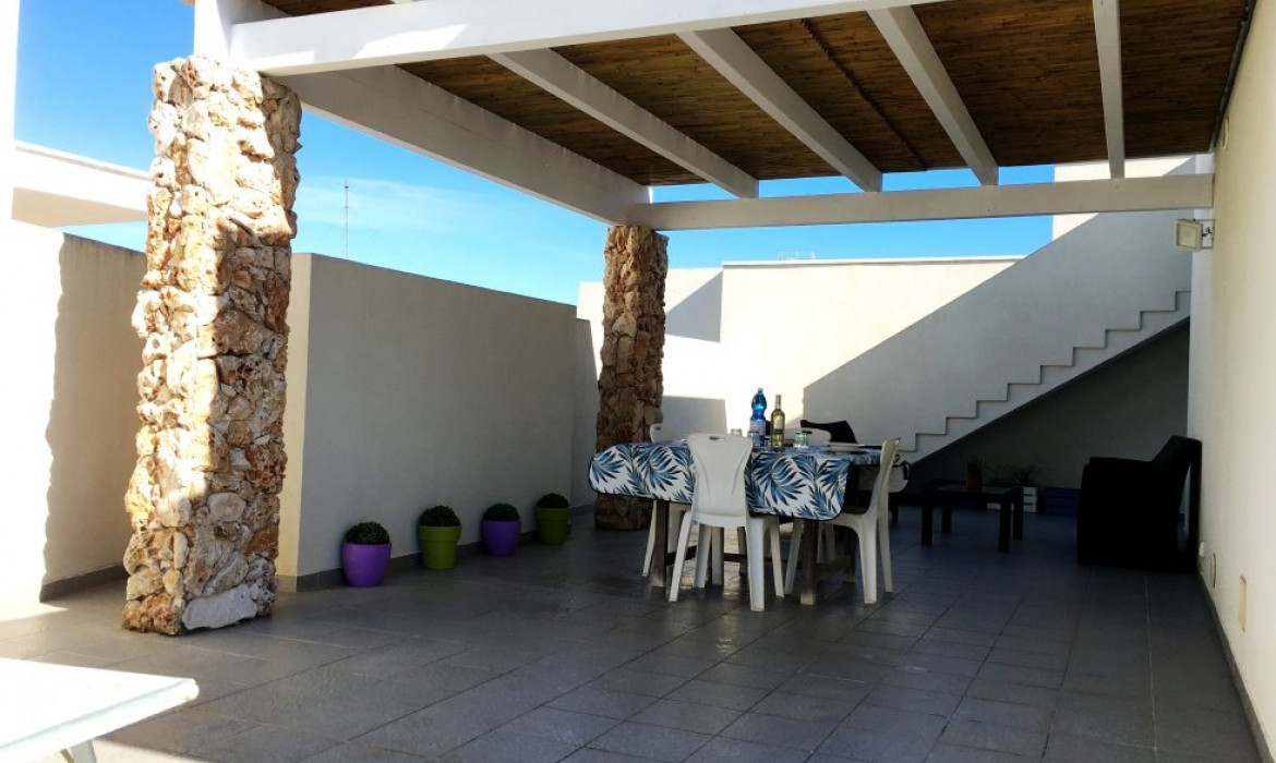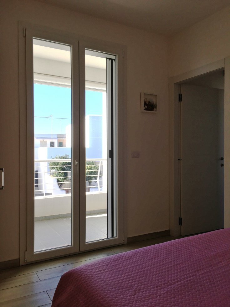 Prestigioso appartamento NUOVO nella Marina di San Foca, con ampi spazi e terrazze a livello attrezzate con mobilio da esterni e spazi per biciclette a piano terra. La soluzione vacanza proposta in locazione, si compone da: ingresso-soggiorno con divano e cucina completa di elettrodomestici quali forno, frigo con congelatore, tavolo con sedie, lavastoviglie, disimpegno centrale con clima, 2 camere da letto di cui una matrimoniale e una con letti singoli accoppiabili entrambe complete di armadi due/tre ante e comodini e comò, bagno completo e con box doccia, balconi ad entrambe le camera. Arredata Nuova molto confortevole. Terrazza a livello con l'appartamento attrezzata con arredo da giardini corredata di tavolo e sedie per pranzare e cenare all'aperto coperta con tegolato in legno, e salottini per trascorrere piacevoli momenti in relax respirando la meravigliosa aria fresca di San Foca; zona solarium con lettini prendisole e doccia esterna coperta con acqua calda e fredda. Posti letto massimo 4. Climatizzato doppio, uno nel soggiorno e uno nel disimpegno della zona notte. Accesso dal piano stradale con piccolo scoperto privato pavimentato multiuso, scale private per accesso al piano primo, dove troviamo l'appartamento. Animali non ammessi. Dista dalla spiaggia libera adiacente il porto, appena 80 m, dal Lido li Marangi spiaggia grande libera e/o attrezzata appena 400 m. Tv color lcd 19 pollici. Appartamento con zanzariere in tutti gli ambienti. Infissi in alluminio a taglio termico con doppia apertura sia normale sia vasistas, tende a rullo nelle camere da letto per eventuale ombreggiatura. Lavatrice su balcone retrostante. Terrazza accessibile con VISTA MARE, dove eventualmente collocare la zona solarium portando su i lettini prendisole. Indipendente. In centro. Insonorizzata. CIN: IT075043C200045175