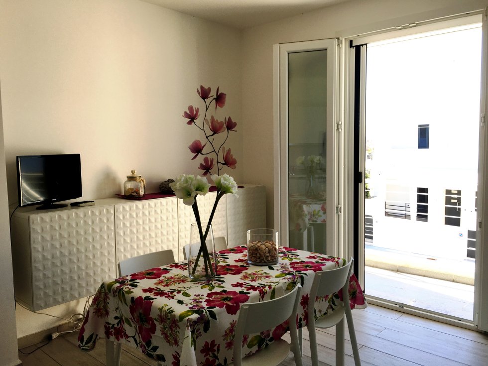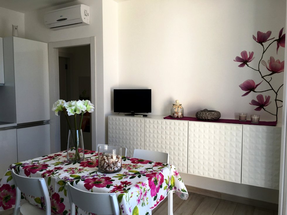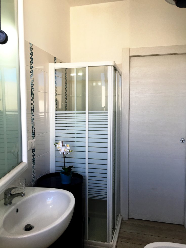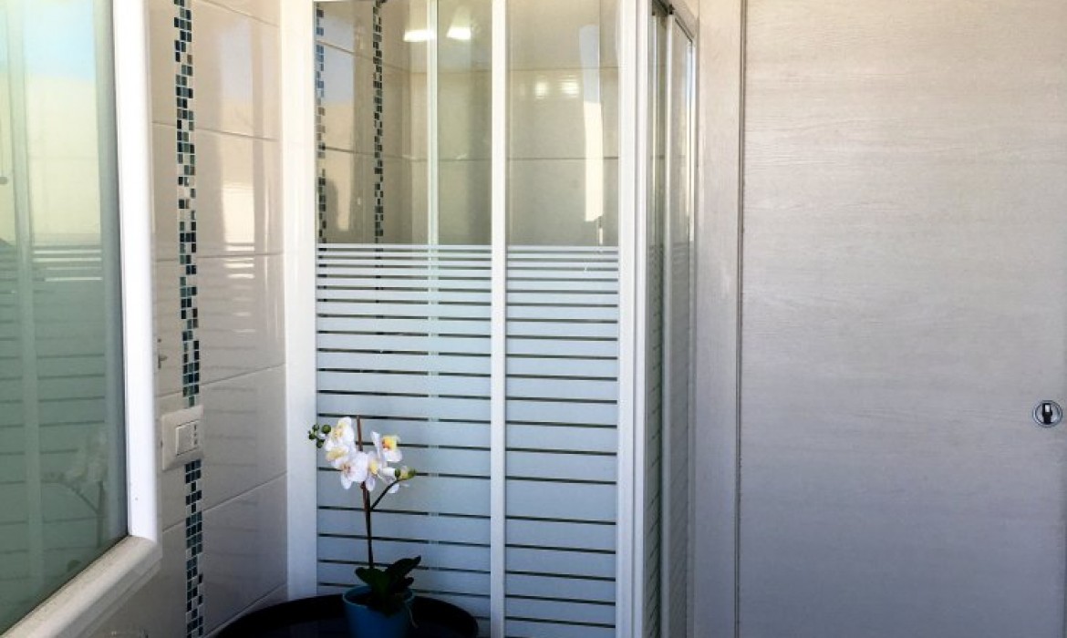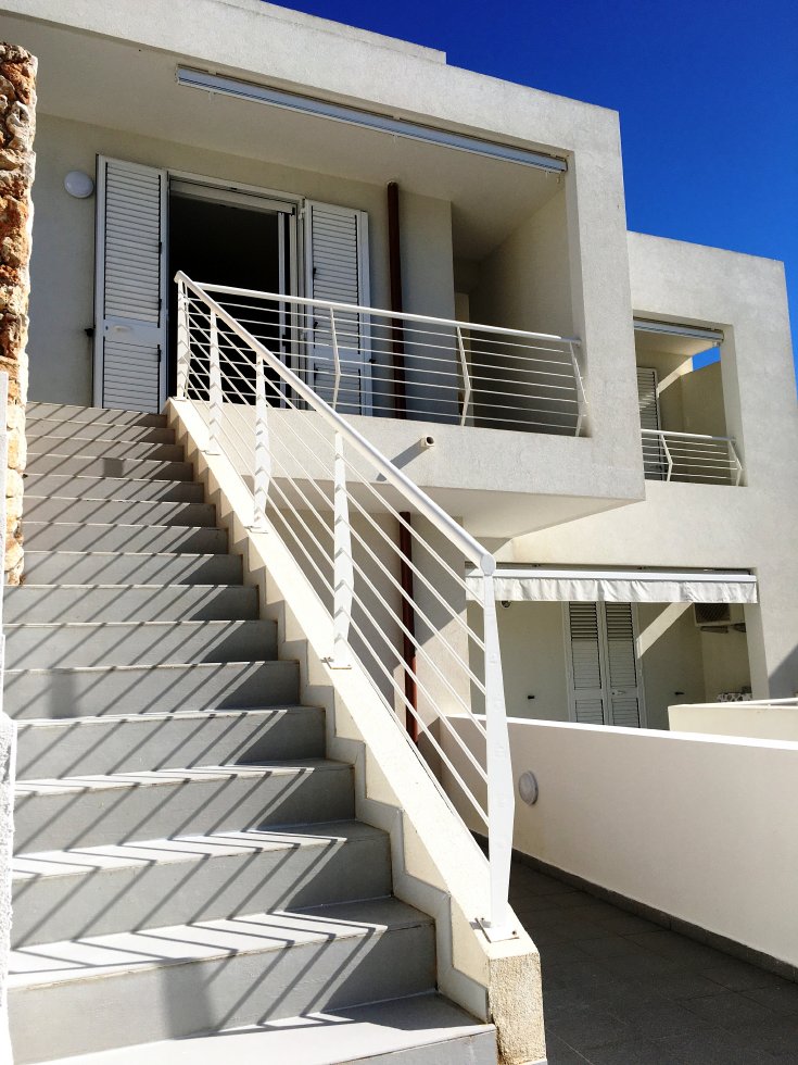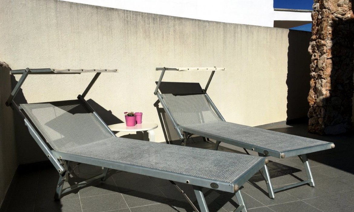 Prestigioso appartamento NUOVO nella Marina di San Foca, con ampi spazi e terrazze a livello attrezzate con mobilio da esterni e spazi per biciclette a piano terra. La soluzione vacanza proposta in locazione, si compone da: ingresso-soggiorno con divano e cucina completa di elettrodomestici quali forno, frigo con congelatore, tavolo con sedie, lavastoviglie, disimpegno centrale con clima, 2 camere da letto di cui una matrimoniale e una con letti singoli accoppiabili entrambe complete di armadi due/tre ante e comodini e comò, bagno completo e con box doccia, balconi ad entrambe le camera. Arredata Nuova molto confortevole. Terrazza a livello con l'appartamento attrezzata con arredo da giardini corredata di tavolo e sedie per pranzare e cenare all'aperto coperta con tegolato in legno, e salottini per trascorrere piacevoli momenti in relax respirando la meravigliosa aria fresca di San Foca; zona solarium con lettini prendisole e doccia esterna coperta con acqua calda e fredda. Posti letto massimo 4. Climatizzato doppio, uno nel soggiorno e uno nel disimpegno della zona notte. Accesso dal piano stradale con piccolo scoperto privato pavimentato multiuso, scale private per accesso al piano primo, dove troviamo l'appartamento. Animali non ammessi. Dista dalla spiaggia libera adiacente il porto, appena 80 m, dal Lido li Marangi spiaggia grande libera e/o attrezzata appena 400 m. Tv color lcd 19 pollici. Appartamento con zanzariere in tutti gli ambienti. Infissi in alluminio a taglio termico con doppia apertura sia normale sia vasistas, tende a rullo nelle camere da letto per eventuale ombreggiatura. Lavatrice su balcone retrostante. Terrazza accessibile con VISTA MARE, dove eventualmente collocare la zona solarium portando su i lettini prendisole. Indipendente. In centro. Insonorizzata. CIN: IT075043C200045175