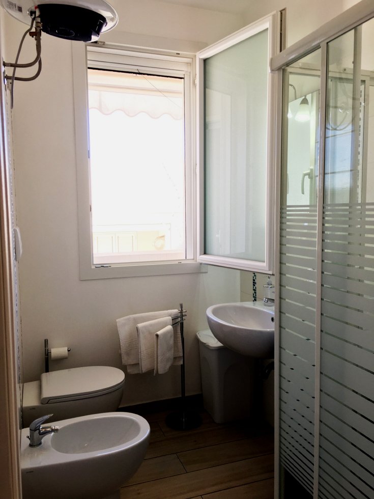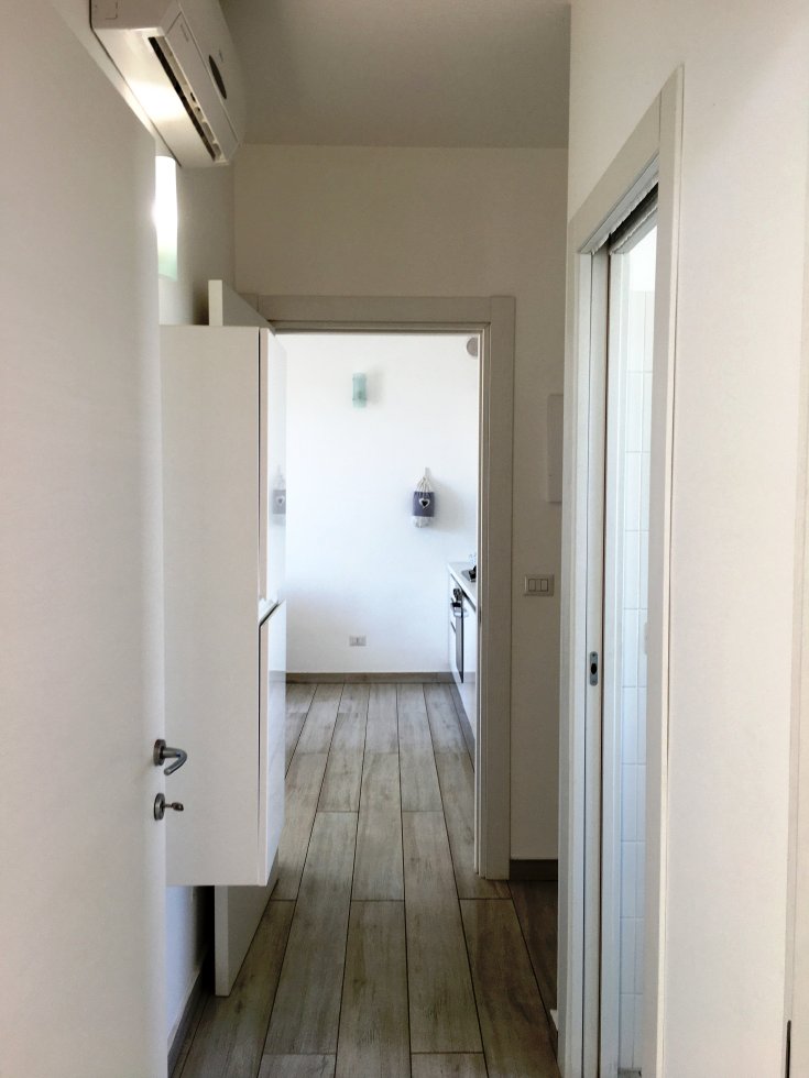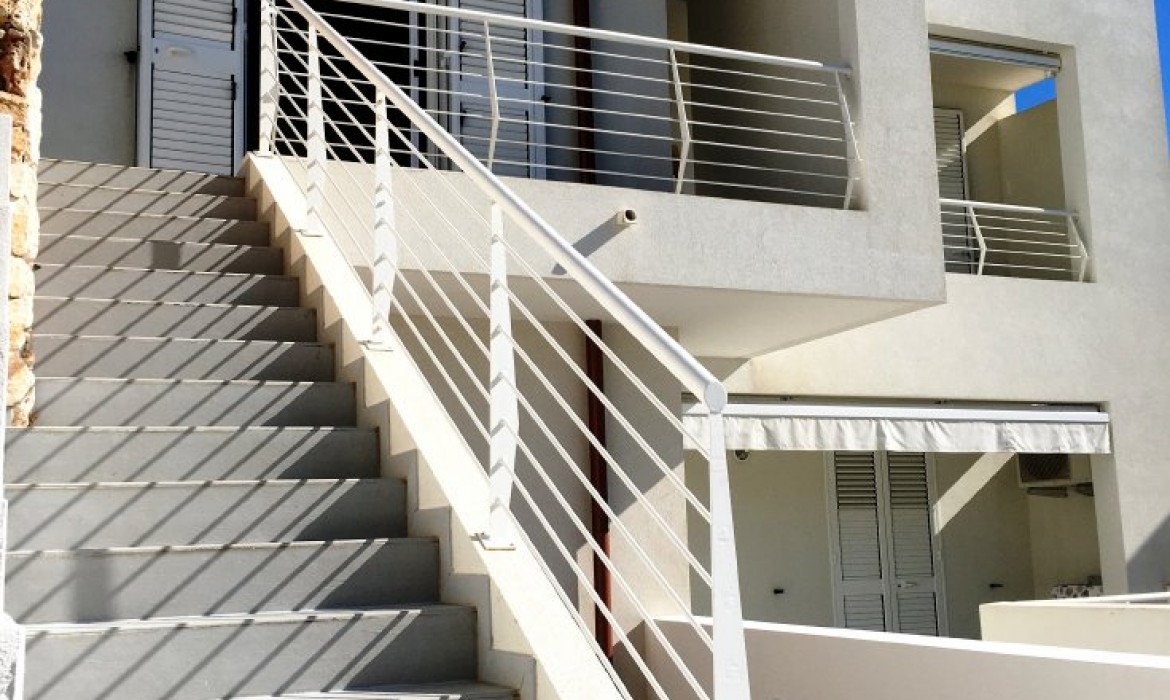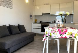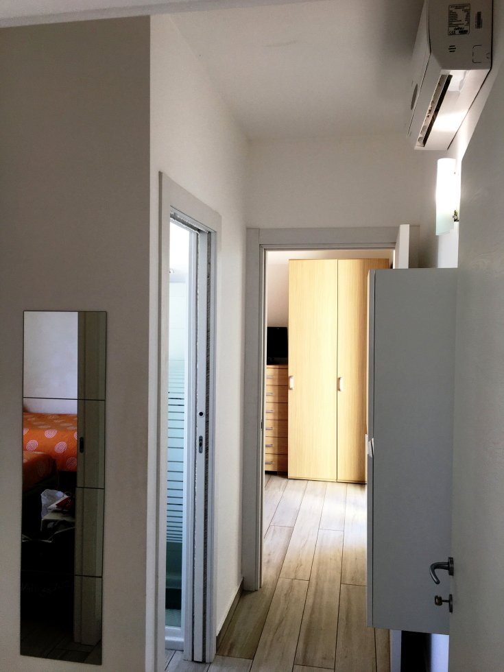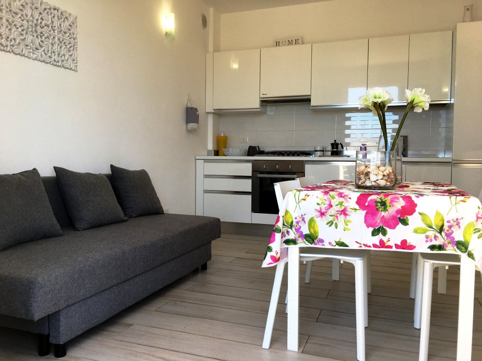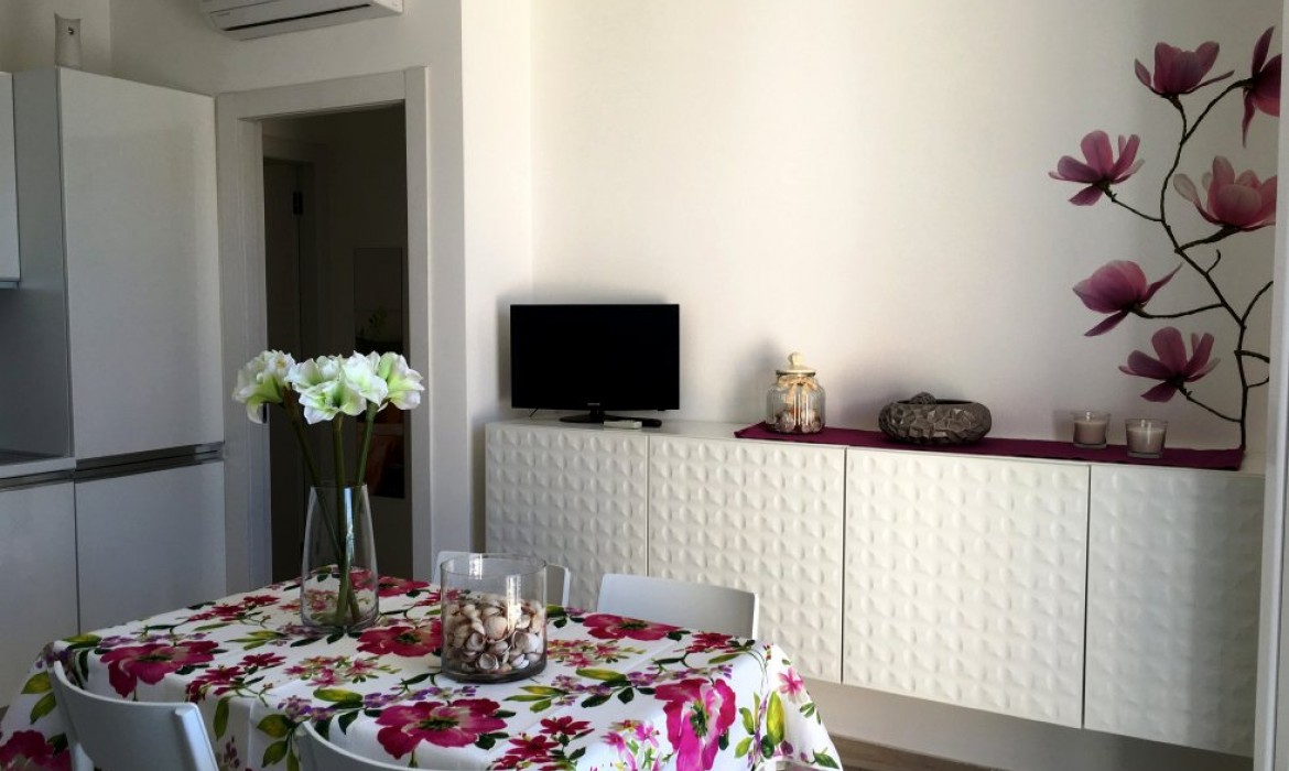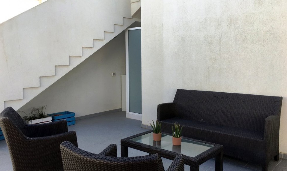 Prestigioso appartamento NUOVO nella Marina di San Foca, con ampi spazi e terrazze a livello attrezzate con mobilio da esterni e spazi per biciclette a piano terra. La soluzione vacanza proposta in locazione, si compone da: ingresso-soggiorno con divano e cucina completa di elettrodomestici quali forno, frigo con congelatore, tavolo con sedie, lavastoviglie, disimpegno centrale con clima, 2 camere da letto di cui una matrimoniale e una con letti singoli accoppiabili entrambe complete di armadi due/tre ante e comodini e comò, bagno completo e con box doccia, balconi ad entrambe le camera. Arredata Nuova molto confortevole. Terrazza a livello con l'appartamento attrezzata con arredo da giardini corredata di tavolo e sedie per pranzare e cenare all'aperto coperta con tegolato in legno, e salottini per trascorrere piacevoli momenti in relax respirando la meravigliosa aria fresca di San Foca; zona solarium con lettini prendisole e doccia esterna coperta con acqua calda e fredda. Posti letto massimo 4. Climatizzato doppio, uno nel soggiorno e uno nel disimpegno della zona notte. Accesso dal piano stradale con piccolo scoperto privato pavimentato multiuso, scale private per accesso al piano primo, dove troviamo l'appartamento. Animali non ammessi. Dista dalla spiaggia libera adiacente il porto, appena 80 m, dal Lido li Marangi spiaggia grande libera e/o attrezzata appena 400 m. Tv color lcd 19 pollici. Appartamento con zanzariere in tutti gli ambienti. Infissi in alluminio a taglio termico con doppia apertura sia normale sia vasistas, tende a rullo nelle camere da letto per eventuale ombreggiatura. Lavatrice su balcone retrostante. Terrazza accessibile con VISTA MARE, dove eventualmente collocare la zona solarium portando su i lettini prendisole. Indipendente. In centro. Insonorizzata. CIN: IT075043C200045175