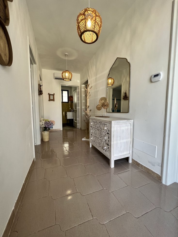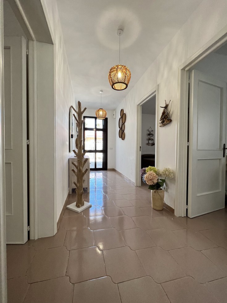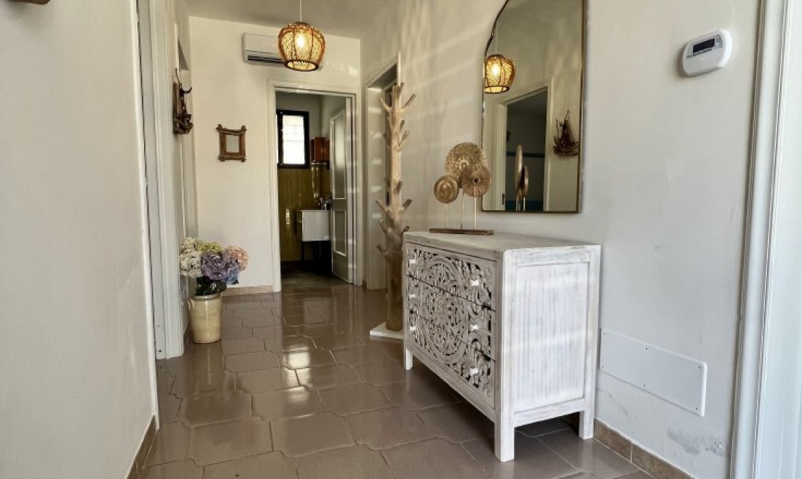 Villa Merlera, Prestigiosa Villa per vacanze a Torre Chianca di Porto Cesareo nel Salento, all'altezza dello stabilimento balneare di spiaggia di sabbia, denominato Lido Elios a 20 metri dalla spiaggia di sabbia, con ampi spazi esterni ed interni e verande attrezzate con mobilio da esterni.La soluzione vacanza proposta in locazione, di tipologia quadrilocale, si compone da: ingresso/disimpegno, soggiorno grande con zona divanetti e tv color, cucina con angolo cottura completo di forno e frigo con congelatore, 3 camere da letto tutte dotate di armadio, di cui due matrimoniali, una con due letti singoli accoppiabili, bagno con doccia, giardino esterno su quattro lati, veranda coperta avanti attrezzata con mobilio da esterno per pranzare e/o cenare all'aperto. La villa dispone di tv color, aria condizionata, barbecue esterno, doccia esterna, sdraio e lettini prendisole e salottino esterno per momenti di relax, posti macchina all'interno della villetta nel giardino. Arredata Nuova molto confortevole, si trova in ottima posizione, vicina ad altre ville simili, ed ideale per famiglie con voglia di rilassarsi. Posti letto massimo 6. Climatizzata. Lavatrice. Animali non ammessi. La villa è caratterizzata da infissi in alluminio, dotati tutti, sia porte che finestre, di zanzariere. La villetta dista 20 (Venti) metri, dalle splendide calette di spiaggia di sabbia del Lido Elios (Lido attrezzato), ma anche dalla spiaggia di sabbia libera, e 700 metri da Market, Edicola, Bar. Tv color lcd 19 pollici uno per ogni ambiente, indipendenti. CIN: IT075097C200061985