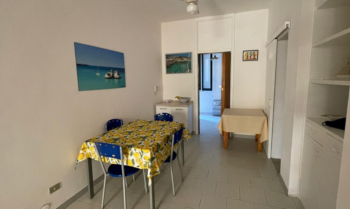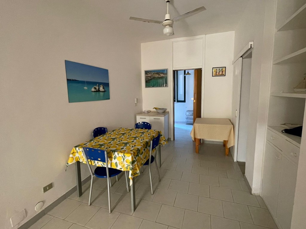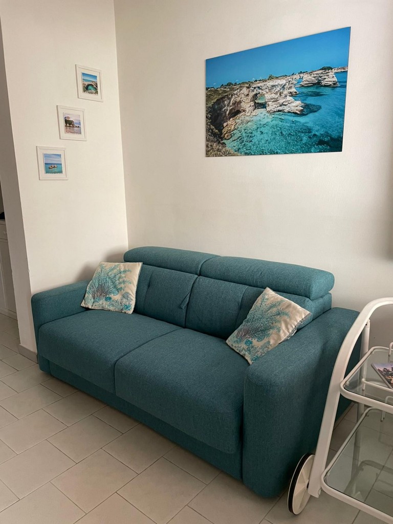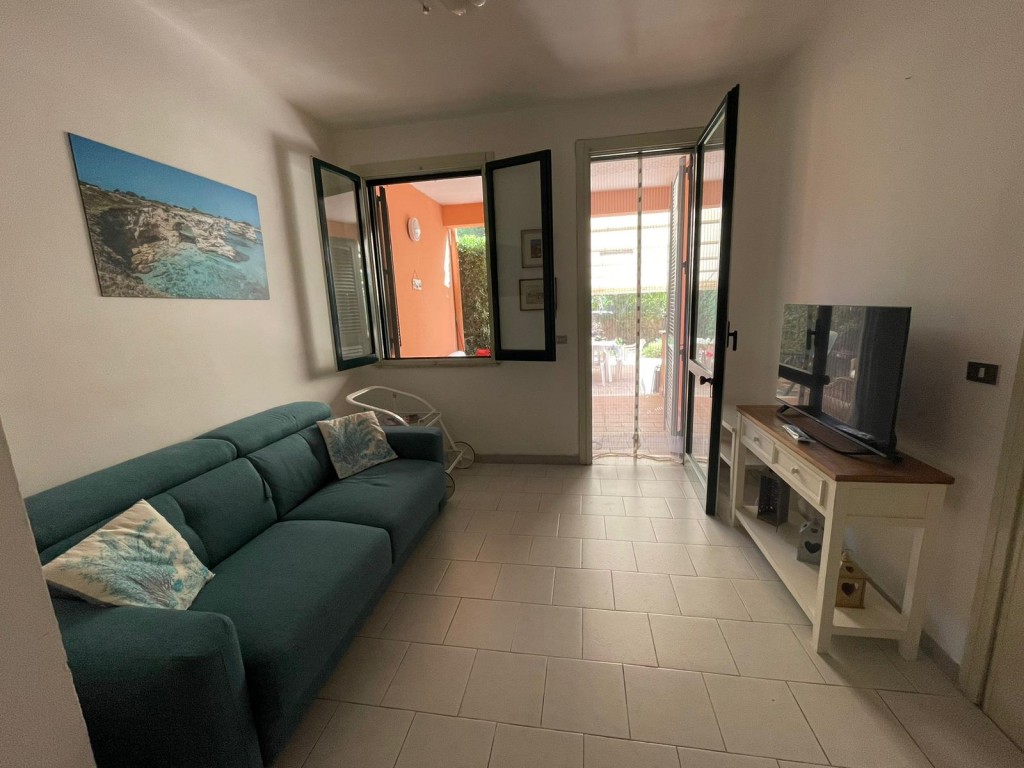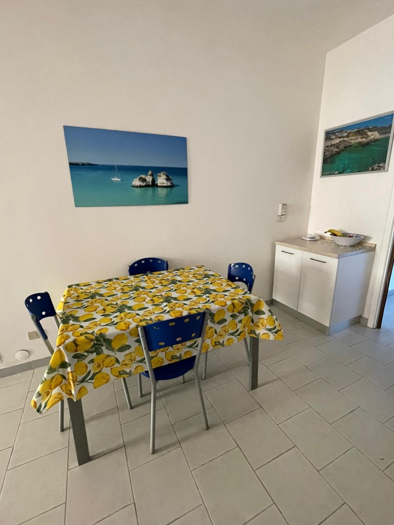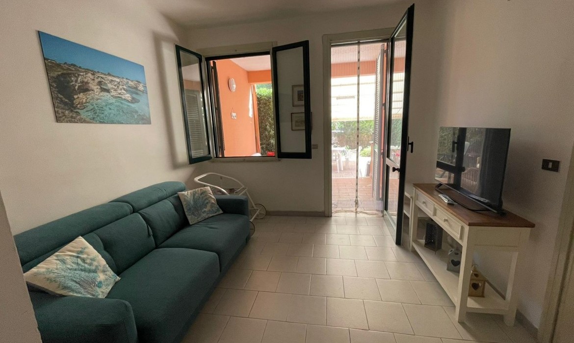Si compone da, ingresso-soggiorno con divano letto due posti e aria condizionata, tavolo con sedie in legno corredato da dispensa e tv color lcd 32 pollici, cucina a parte con angolo cottura ed elettrodomestici tipo forno e microonde e frigo con congelatore, disimpegno notte e giorno, 2 camere da letto entrambe matrimoniali ed entrambe con aria condizionata separate, doppi servizi interni di cui uno al servizio di tutti con box doccia 75*100 l'altro in camera da letto completo ma senza doccia, ripostiglio, lavatrice, forno microonde, forno, veranda piastrellata anteriore attrezzata e completa di tavolo con sedie in plastica e tenda per il sole, veranda posteriore con stendino e doccia esterna coperta. Ospita un massimo di 6 posti letto. Dista dalla spiaggia di sabbia appena 250 m percorribili facilmente a piedi. Sito in centro a Torre dell'Orso. Veranda anteriore coperta con tenda elettrica. Animali NON ammessi di nessun genere e taglia. Ammesse solo famiglie e non comitive. CIN: IT075043C200077712