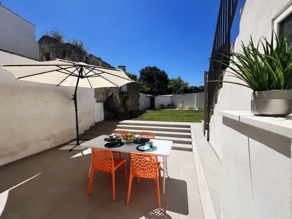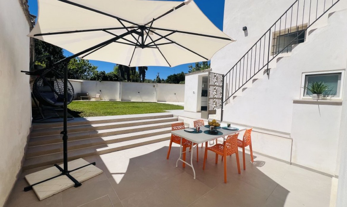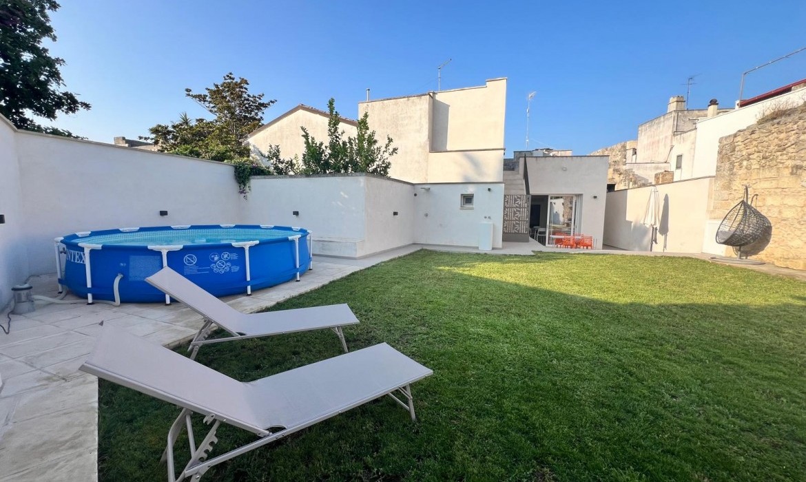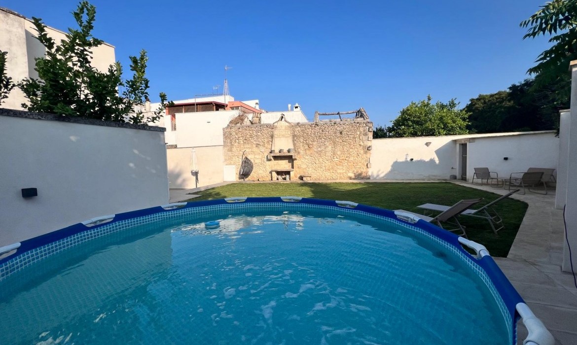 Una Tipica casa salentina minuziosamente restaurata. La cura nei minimi dettagli rende la struttura romantica e confortevole, con la fusione dell'antico e il moderno, dove troviamo ampi spazi esterni utili per pranzare e cenare all'aperto godendo della frescura delle notti salentine, dove il profumo inebriante del verde prato posto nel giardino confonde e seduce le idee; una piscina fuori terra dove rifugiarsi e rinfrescarsi nelle ore più calde ma anche per un bagno serale dopo una giornata al mare; una zona divanetti con dondolo dove rilassarsi e bere un rigenerante drink.