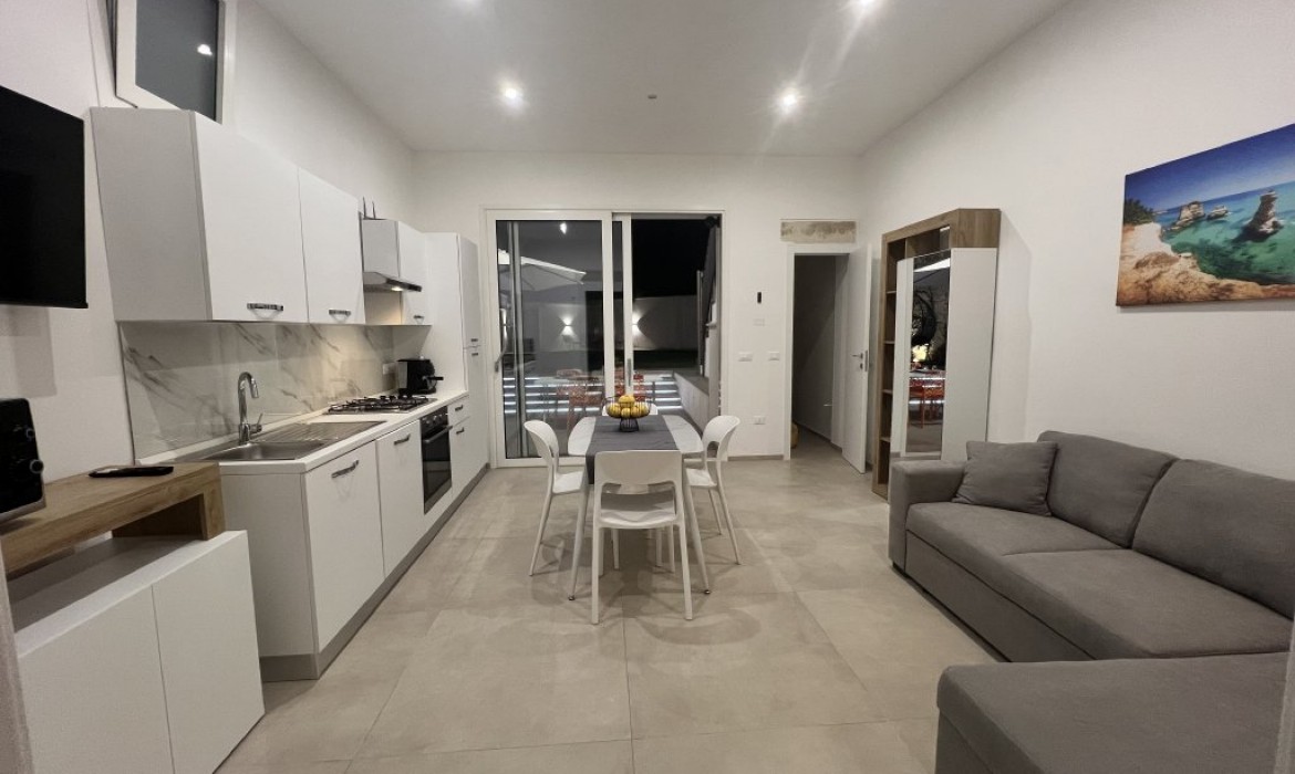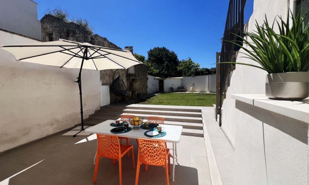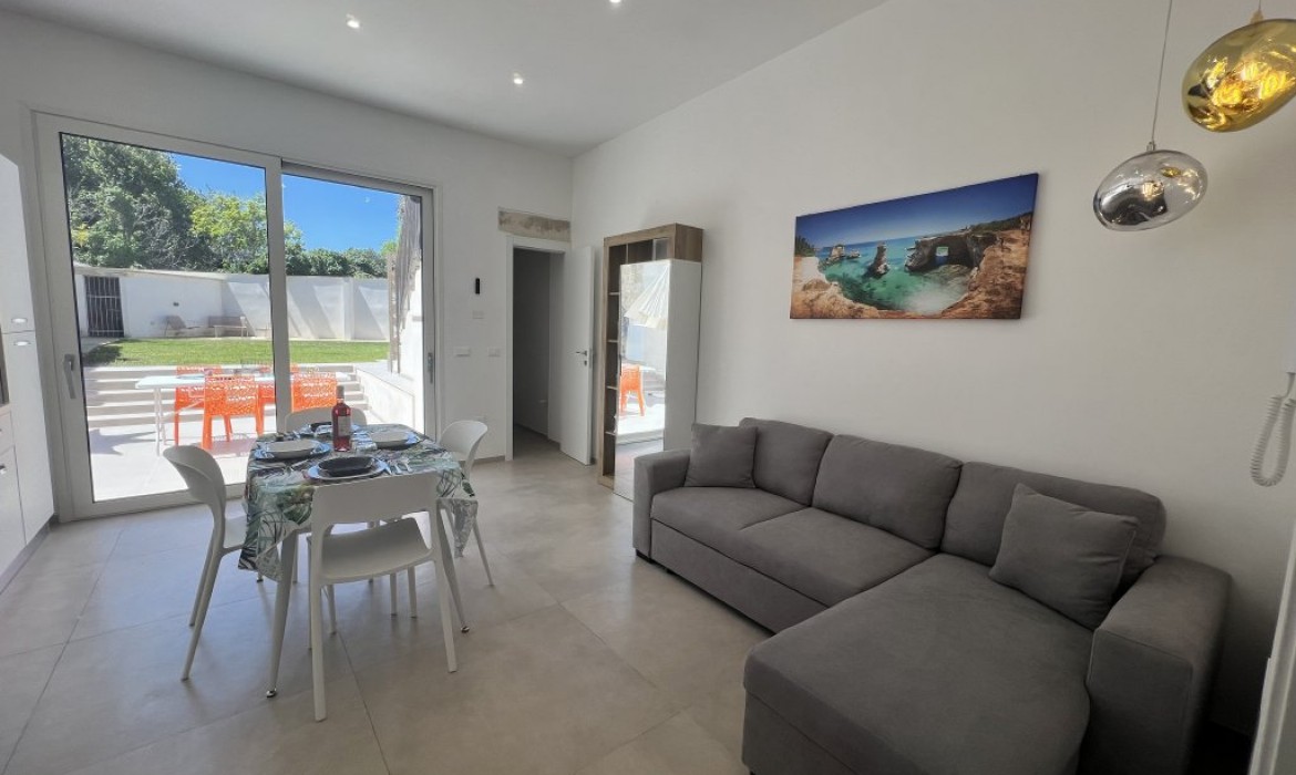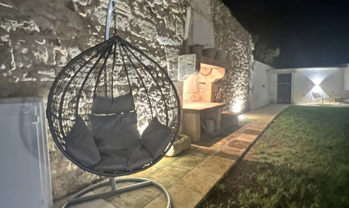 Una Tipica casa salentina minuziosamente restaurata. La cura nei minimi dettagli rende la struttura romantica e confortevole, con la fusione dell'antico e il moderno, dove troviamo ampi spazi esterni utili per pranzare e cenare all'aperto godendo della frescura delle notti salentine, dove il profumo inebriante del verde prato posto nel giardino confonde e seduce le idee; una piscina fuori terra dove rifugiarsi e rinfrescarsi nelle ore più calde ma anche per un bagno serale dopo una giornata al mare; una zona divanetti con dondolo dove rilassarsi e bere un rigenerante drink.