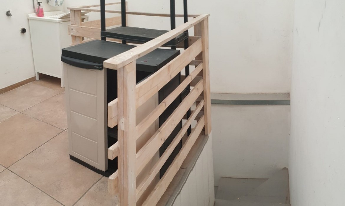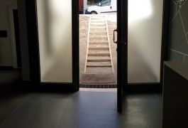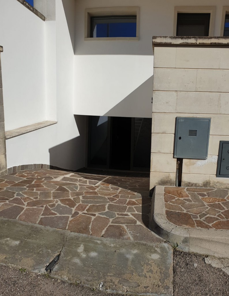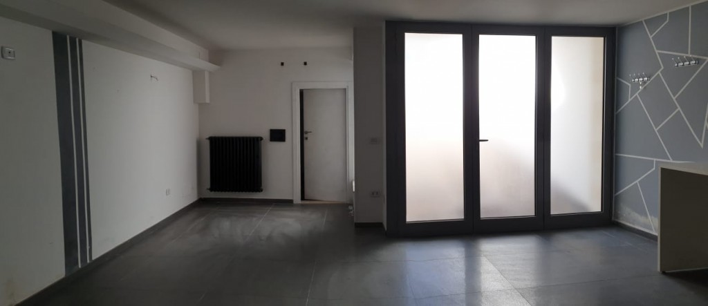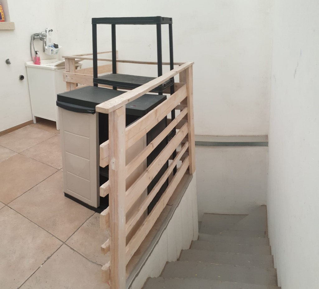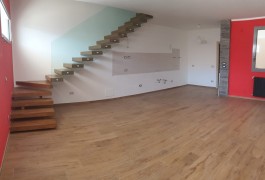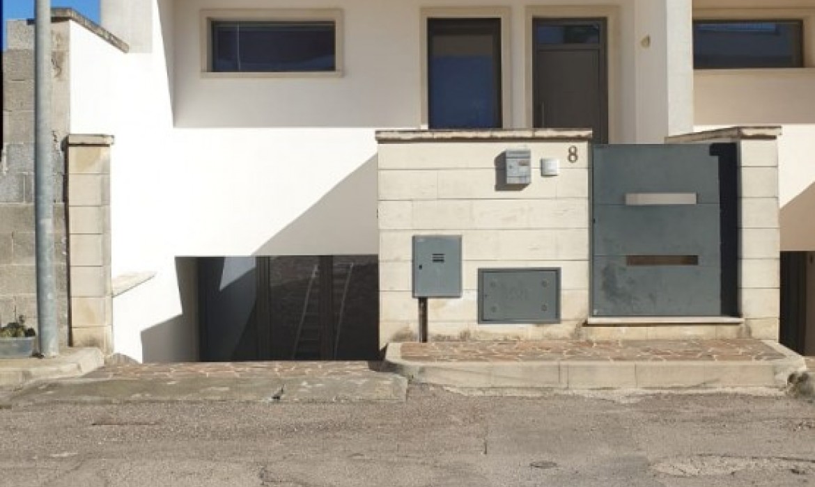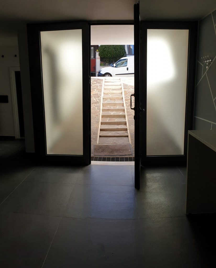 Piano Terra, con ulteriore accesso dalla tavernetta mediante scaletta in legno retrostante l'abitazione coperta, verandina privata con ingresso da fronte strada, grande spazio open-space con scala del tipo a gradini fluttuanti e corrimano in cristallo, bagno completo con doccia, e piccolo scoperto con lavanderia dove è collocata la scala per andare in tavernetta.