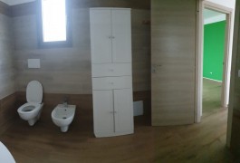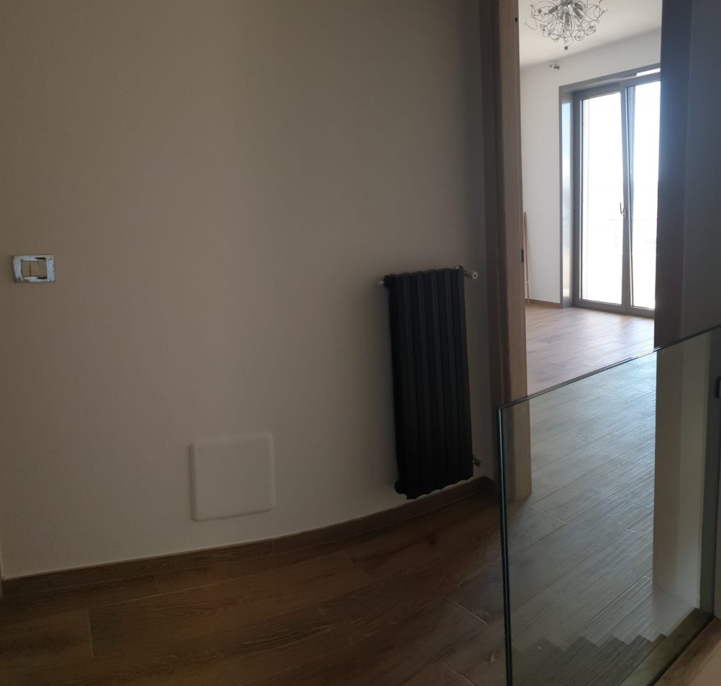 Piano Primo, mediante le scale interne si accede al piano primo zona notte, disimpegno con balconcino in cristallo, due camere da letto di cui una con affaccio su balconcino privato e armadio a muro, bagno completo e con vasca idromassaggio.